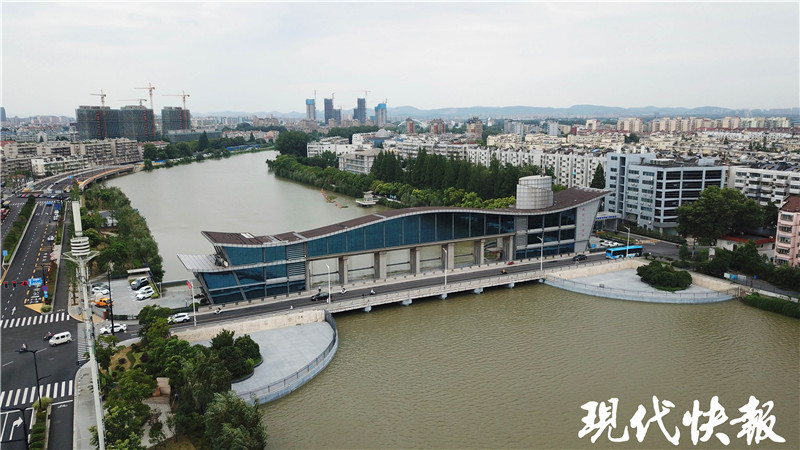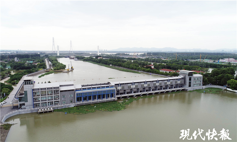7月12日,現(xiàn)代快報記者來到秦淮新河水利樞紐,這里位于秦淮新河入江口處,離長江大約三四公里。一座閘站一體的大型建筑物,呈一字型橫跨于秦淮新河。