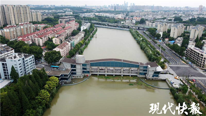 距入江口約13公里是武定門水利樞紐,由武定門泵站、武定門閘的兩座中型水工建筑物組成。7月12日8時,江蘇省武定門閘管理所關(guān)閉了泵站的所有抽水泵。