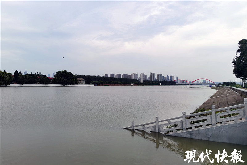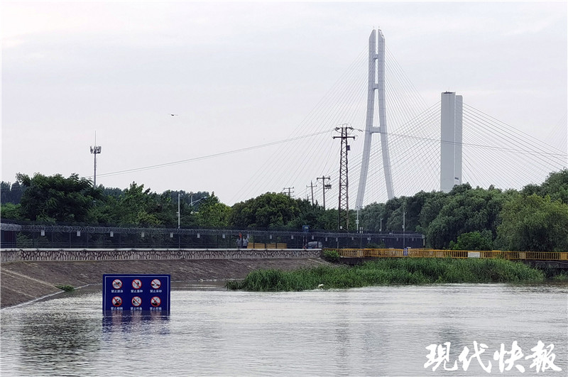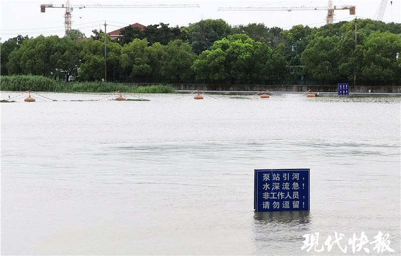 記者在秦淮新河閘下游看到,水面距離堤頂還有約2米距離。“人眼看到的水下,原來還有坡道和平臺,現(xiàn)在全淹了。”薛海朋說,歷史上閘下的最高水位達到10.58米。今年入梅前,閘下長江水位維持在5-6米,一個月來漲了4米多。