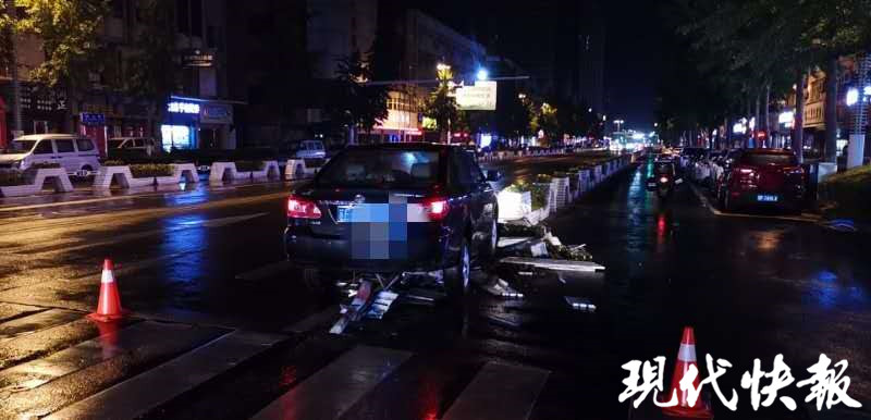 7月12日21時(shí)40分許,如皋市公安局接到報(bào)警電話稱,中山路大司馬路口一輛轎車撞到綠化帶,無(wú)人受傷,現(xiàn)場(chǎng)損失較大。轄區(qū)中隊(duì)民警立即趕到現(xiàn)場(chǎng),發(fā)現(xiàn)僅一輛南通牌照的小型轎車騎停在機(jī)非分離護(hù)欄上,護(hù)欄前側(cè)已被夷平,車輛前部損壞較嚴(yán)重。