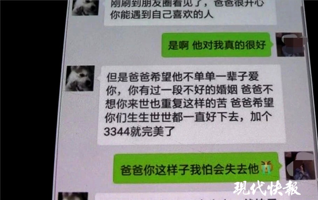 △“美女”與“老爸”聊天要3344元截圖