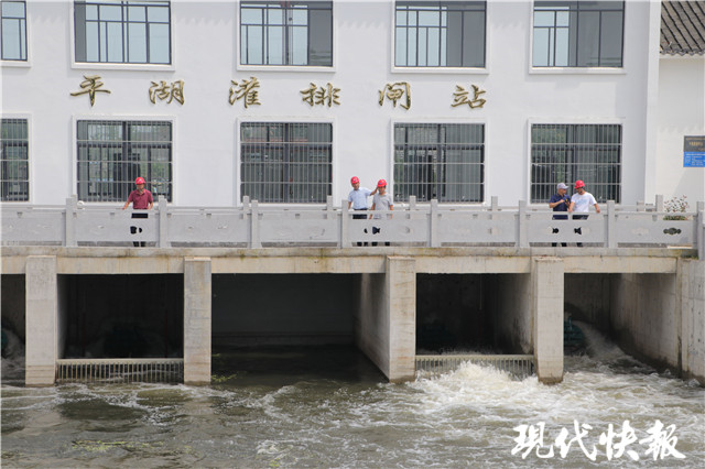 宋蘇海是大縱湖旅游度假區(qū)平湖居委會人,在度假區(qū)水利站工作已經(jīng)有七八年時間,主要負責平湖灌排閘站。14日上午,現(xiàn)代快報記者在該閘站看到,閘站的幾臺水泵正在將鎮(zhèn)區(qū)河道里的水向外河排放,兩邊的水位正常。“大雨的時候我們會開閘排水,4臺水泵,每秒鐘能排出8立方米的水。”宋蘇海說。