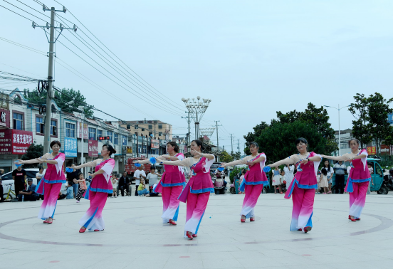 祖國富強,人民幸福?;春咏∩黻牭摹痘鸹鸬闹袊鸹鸬臅r代》,表達出舞友們對祖國的熱愛,振奮了每個人的精神。界牌健身隊的《太湖美》,舞出他們對幸福生活的熱愛。隨著悠揚的舞曲響起,各方陣隊員一招一式整齊劃一,呈現(xiàn)出了廣場舞動作的力與美,展現(xiàn)了界牌鎮(zhèn)新時代農(nóng)民的精神面貌,她們在運動中收獲健康、在健康中享受快樂。在陶醉自身的同時,也陶冶了別人,感染著過往的群眾,構(gòu)成了一幅幅鮮活、和諧的新農(nóng)村人文風(fēng)景畫。