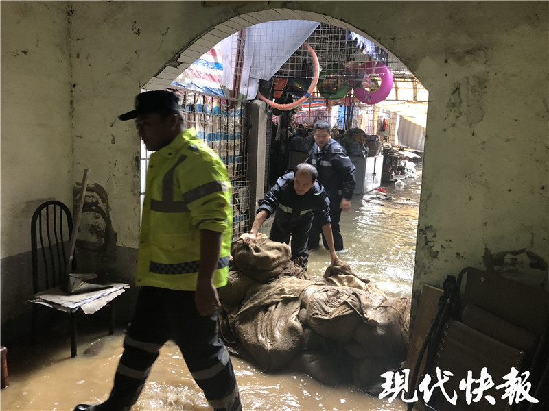 南京江寧河邊小商品市場被淹 城管緊急搶險(xiǎn)