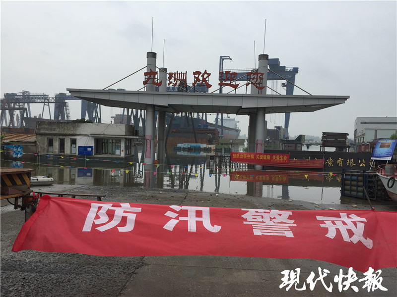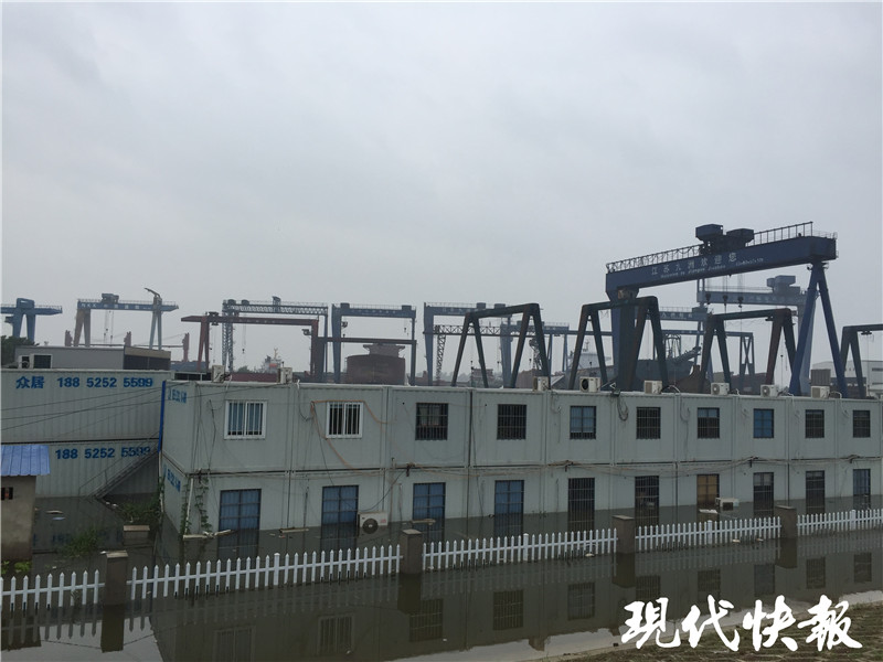△江水已經(jīng)淹進(jìn)揚州部分船廠廠區(qū)