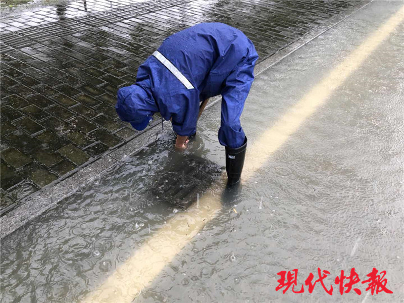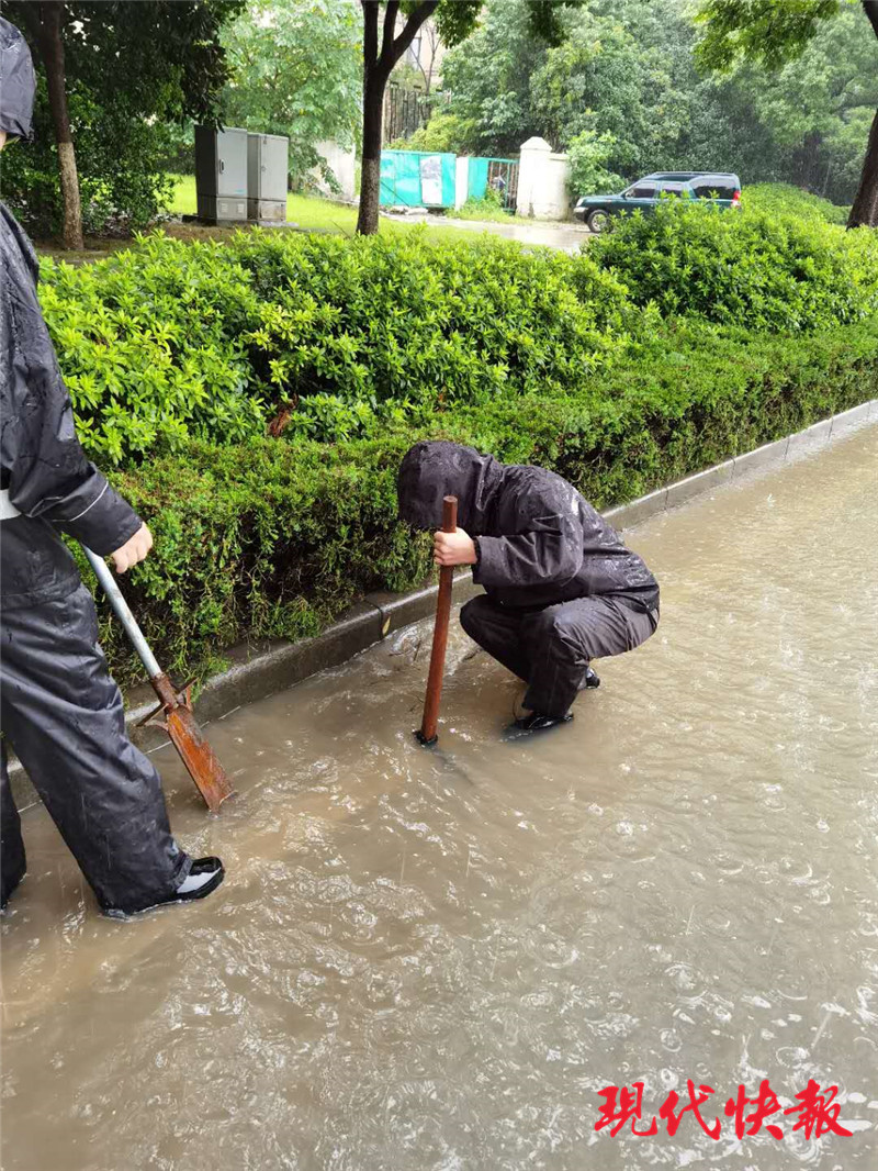 △ 錫山城管中隊(duì)隊(duì)員排水
