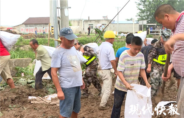 記者在現(xiàn)場看到,原本生長態(tài)勢良好的西瓜地已經(jīng)沒入水中,只有部分藤葉還漂浮在水面上。“遠處那棵樹以前樹根下都看不到水,現(xiàn)在水已經(jīng)過了樹主干的位置了。”沿河村村書記滿令風(fēng)說,村民們知道險情后,紛紛前來參加搶險,一名67歲的老黨員主動與工作人員一起走到水里,尋找滲漏點,還有一名13歲的少年張本杰肩扛土包來回運送,沒抱怨過一聲累。