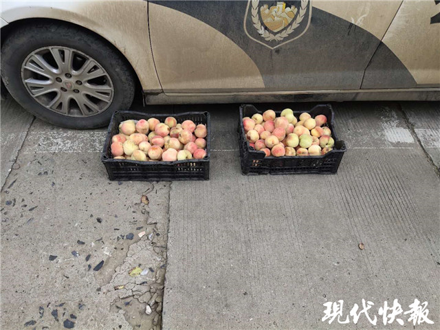 一夜醒來 防汛執(zhí)勤民警的車門外多了兩筐桃子