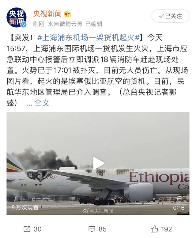突發(fā)!上海浦東機(jī)場(chǎng)一架波音777貨機(jī)著火