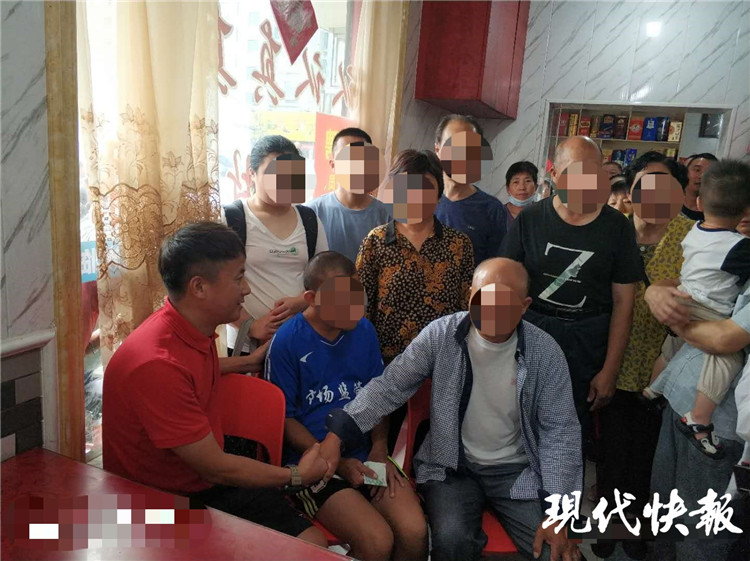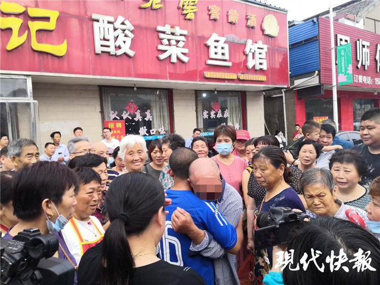 7月26日上午,楊家人從海安市趕來。得悉“王名江”要走,寶應(yīng)縣時(shí)代廣場(chǎng)美食街整條街的人幾乎聚集在酸菜魚館為他送行。周春龍更是百感交集,他說:“他終于找到家了,以后就是我家的海安親戚,他什么時(shí)候來都可以。”