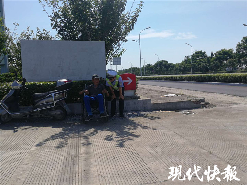 王振華介紹,當(dāng)天上午他開(kāi)著警車(chē)在海姜大道巡邏的時(shí)候,無(wú)意中發(fā)現(xiàn)路中間一個(gè)老人家坐在輪椅上。“老人看上去很疲憊,不時(shí)東張西望。”