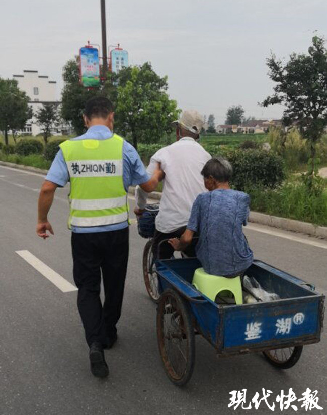“早知這樣就不去了,這下如何是好……”老奶奶哭著對交警說,經(jīng)過民警的施救,老漢逐漸精神恢復(fù)了正常。當(dāng)120救護(hù)車趕到現(xiàn)場后,醫(yī)護(hù)人員發(fā)現(xiàn)老漢沒有大礙,只是天熱中暑。由于老漢身體并無大礙,便執(zhí)意要自己騎車離開。為防不測,民警攙扶著老人騎了一段路程后,又駕駛警車默默一路護(hù)送,發(fā)現(xiàn)老漢真正安全后,這才駕車離開現(xiàn)場。