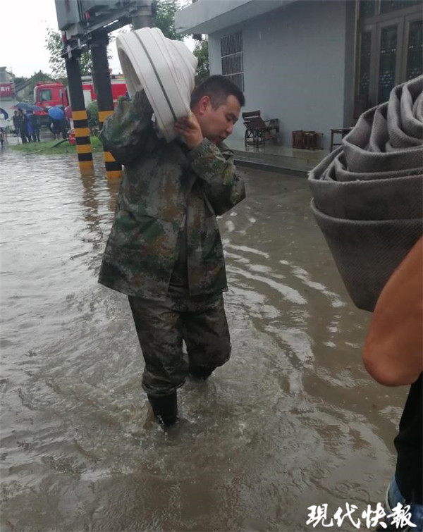8月9日10時許,高郵市人武部值班首長陳立柱接到民兵情報員的澇情報告后,立即指令高郵市城市排澇分隊、高郵鎮(zhèn)應(yīng)急排等180名搶險救災(zāi)人員,趕往澇情嚴重的居民區(qū)排澇。