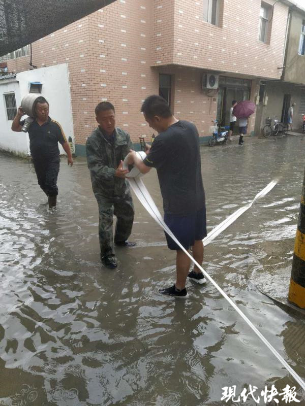 暴雨突襲江蘇高郵 180名民兵火速排澇搶險