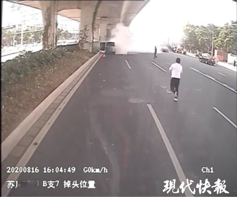 面包車自燃 公交司機3次沖過去救火氣管被灼傷