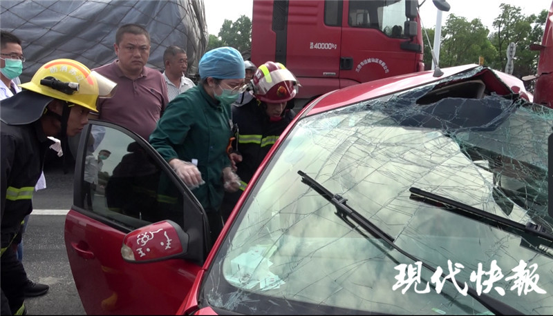 接到報警后,消防部門立即出動趕赴現(xiàn)場,發(fā)現(xiàn)是一輛渣土車與小轎車發(fā)生碰撞,渣土車整個車頭陷入轎車駕駛位,轎車上女司機受傷被困在駕駛室內(nèi),頭部流血,情緒崩潰大哭。