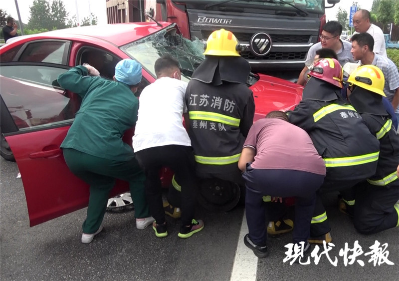 (通訊員 楊艷琪 李縉 記者 毛曉華)8月26日,泰州姜堰老周山河229省道上發(fā)生險情,一輛轎車被渣土車攔腰撞擊,轎車上女司機受傷被困。當?shù)叵磊s到現(xiàn)場救援,由于女司機被卡在兩車縫隙中,須將轎車挪動一段距離,而現(xiàn)場消防員不夠。此時,路過群眾紛紛自發(fā)上前,和消防一起合力將轎車挪開,隨后駕駛員被救出送醫(yī)。