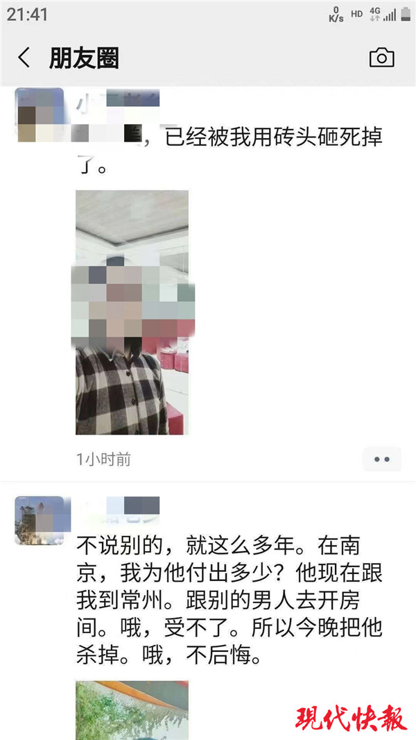 網(wǎng)絡(luò)上流傳出來(lái)有關(guān)嫌疑男子早有行兇念頭。嫌疑男子在其微信朋友圈里連發(fā)多條關(guān)于他砸女友的信息,直言“今晚我殺人了”“杜某某,已經(jīng)被我用磚頭砸死了”,嫌疑男子都配上了一張男子單人照。