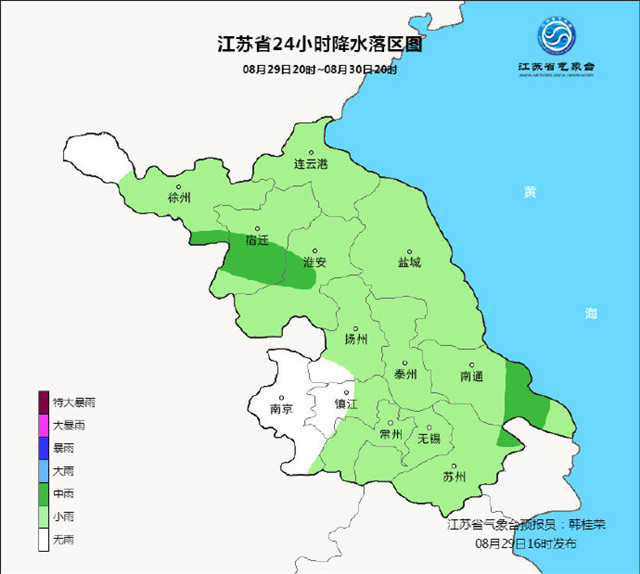 8月29日,江蘇各地可以說是比較涼爽,西北部溫度偏高。最高溫度排首位的是沛縣32.9℃,其次是豐縣32.7℃,邳州32.5℃。幾個雨水較大的地方更清涼,截至下午3點,無錫的最高氣溫為26℃多,蘇州的最高氣溫為27.9℃。