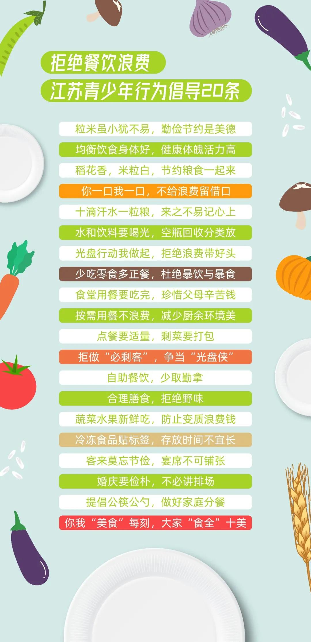 《拒絕餐飲浪費(fèi),江蘇青少年行為倡導(dǎo)20條》
