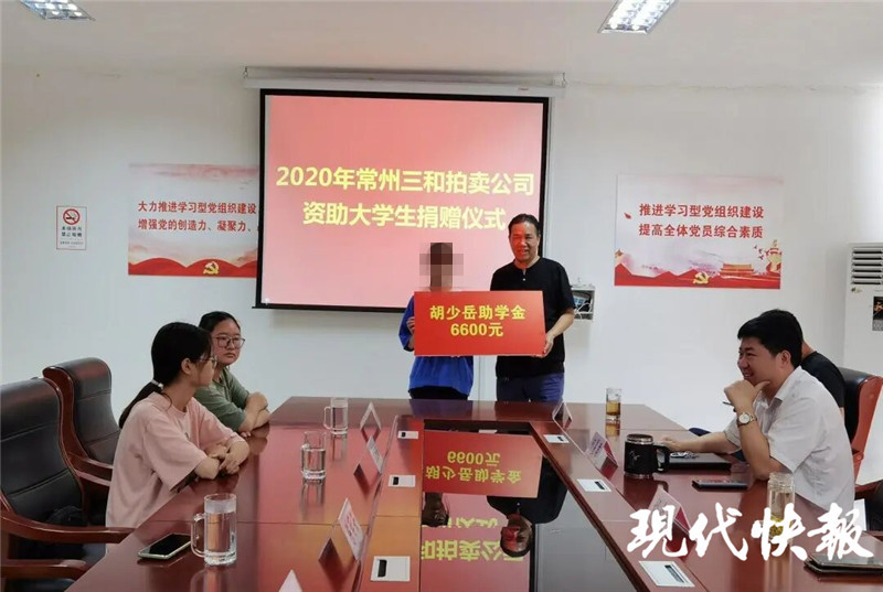 9月2日下午,來自常州的江蘇宏航建設(shè)發(fā)展有限公司和常州三和拍賣公司兩家公司負(fù)責(zé)人曹電成和胡少岳來到灌南縣湯溝鎮(zhèn),參加向貧困大學(xué)生捐助學(xué)費(fèi)的活動(dòng),現(xiàn)場,兩位愛心人士向7名受助學(xué)生每人送上6600元新學(xué)期的學(xué)費(fèi),還有4名已經(jīng)開學(xué)上學(xué)的學(xué)生沒能到現(xiàn)場參加活動(dòng),學(xué)費(fèi)也會(huì)一分不少的交到他們或者親屬手中。