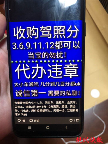 據(jù)常州交警支隊(duì)民警介紹,交警部門嚴(yán)厲打擊駕駛證買分賣分的違法行為。目前,常州交警各大違法處理窗口的工作人員都進(jìn)行了專業(yè)培訓(xùn),還有大數(shù)據(jù)比對發(fā)現(xiàn)“黃牛”。而且,按照相關(guān)法規(guī),一年內(nèi)同一駕駛?cè)耍瑸榉潜救怂械?輛以上不同號牌機(jī)動車銷分,或3名以上駕駛?cè)藶橥惶柵茩C(jī)動車接受違法行為處理的,將列入涉嫌代替接受處理的重點(diǎn)人員名單。