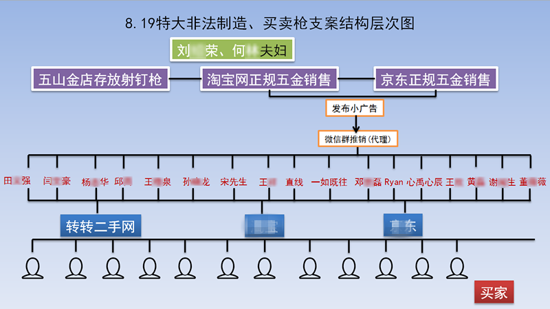 經(jīng)專案組梳理,截至案發(fā),全國已有300余人購買了這款射釘槍。今年2月,專案組又發(fā)現(xiàn)劉某容此前以女兒名義開設(shè)了一家網(wǎng)店,雖已被關(guān)停,但也是劉某容夫婦的一條販槍渠道,經(jīng)民警仔細(xì)研判、抽絲剝繭,又從中獲得近千條網(wǎng)絡(luò)販槍線索,買家遍布全國32個(gè)省市。