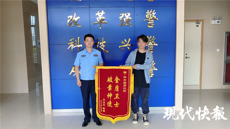 △破案后,朱先生向民警贈送錦旗表示感謝