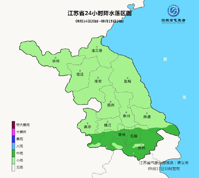 根據(jù)一周天氣預(yù)報(bào),一直到9月18日沿江蘇南地區(qū)都將持續(xù)多陰雨天氣,降水量較大。預(yù)計(jì)9月19日到20日,全省天氣轉(zhuǎn)好,迎來(lái)晴好天氣。