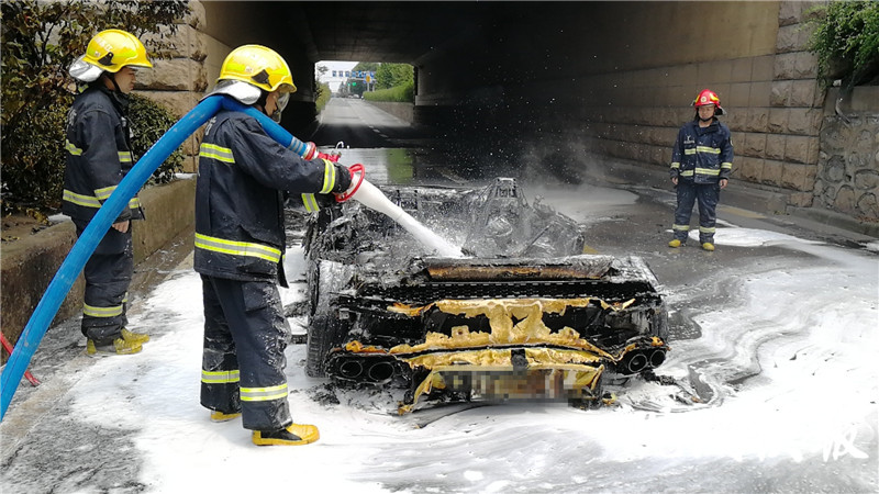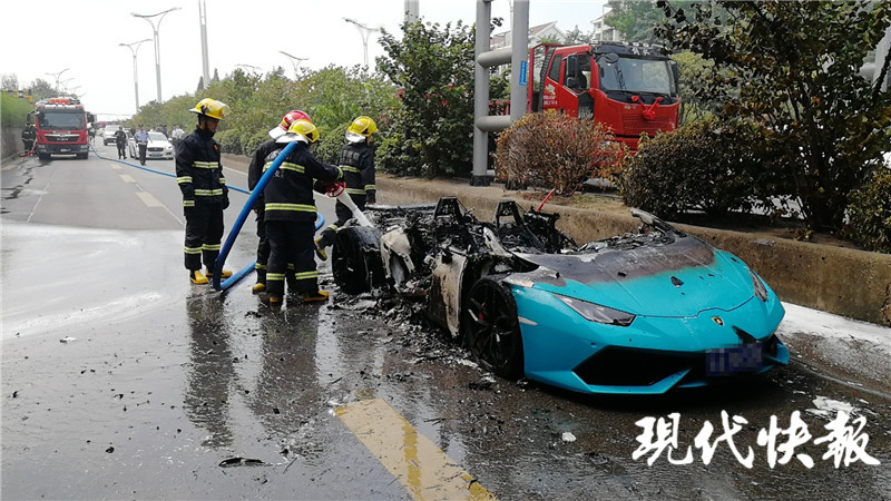9月13日,在南京江北新區(qū)浦六路橋洞往南京長江大橋方向,一輛蘭博基尼突然起火燃燒,現場濃煙滾滾。消防救援人員趕到現場時,整個車身已經被大火包圍,經全力撲救,大火被撲滅,車身被燒毀嚴重,只剩下一個空架子。所幸,事故未造成人員傷亡。