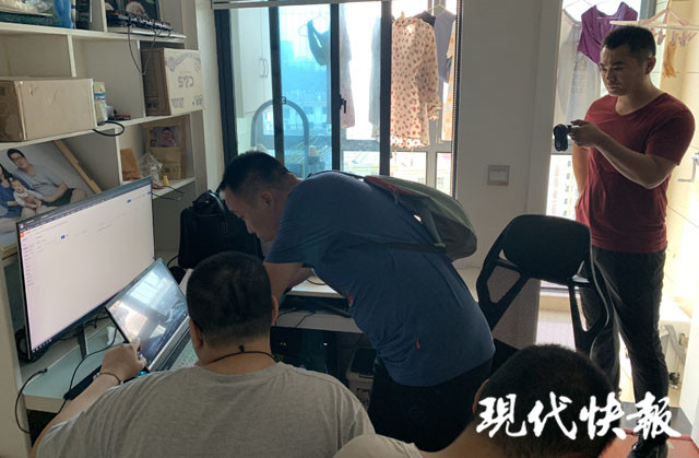 △辦案民警在嫌疑人電腦里搜索證據(jù)
