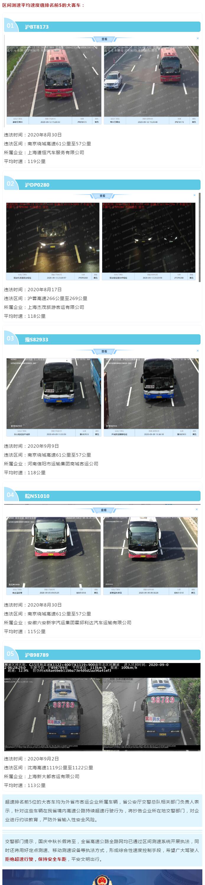 據(jù)悉,超速排名前5位的大客車均為外省市客運(yùn)企業(yè)所屬車輛。省公安廳交警總隊(duì)相關(guān)部門負(fù)責(zé)人表示,針對(duì)這些車輛在江蘇省境內(nèi)高速公路持續(xù)超速行駛行為,將抄告企業(yè)所在地交警部門,對(duì)企業(yè)進(jìn)行約談教育,嚴(yán)防外省輸入性安全風(fēng)險(xiǎn)。