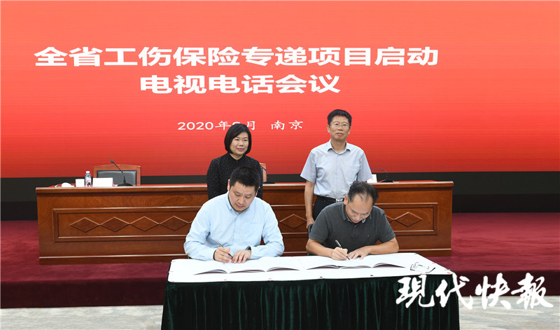 會上,南京市人力資源與社會保障局與南京市郵政分公司代表全省簽訂了“工傷保險專遞”業(yè)務合作協(xié)議。(通訊員提供)