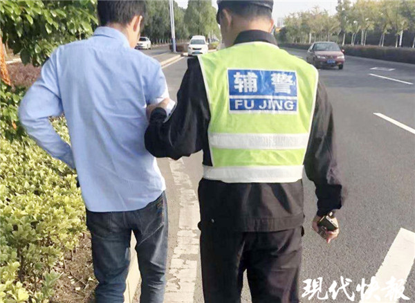 當日下午4點,鎮(zhèn)江新區(qū)交警大隊民警邵明才與輔警汪志民在轄區(qū)金港大道與通港路路口執(zhí)勤時,一輛白色小型汽車突然停在路邊,從車上下來一男子,一手捂住腹部,一手捂住頭部,腳步踉蹌向執(zhí)勤點走去,輔警汪志民發(fā)現(xiàn)情況后趕緊迎上去扶住男子,并詢問發(fā)生了什么事。