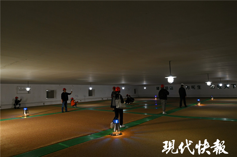 糧食被送到糧庫后,如何防止放霉、防蟲?據(jù)悉,在糧食儲存過程中用到了很多科技手段。在工作人員指引下,參觀者來到一個存放了2000多噸中晚秈稻的糧倉內(nèi),里面看上去稻谷是平鋪的一層,實際上這個高高的糧堆6米多高。據(jù)介紹,糧倉內(nèi)機械通風(fēng)是最重要的,夏天還會開空調(diào),防止糧食發(fā)熱板結(jié),甚至霉變。