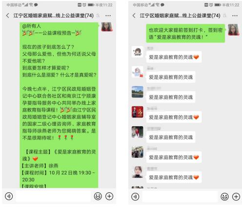 江寧區(qū)婚姻登記處開設(shè)“愛是家庭教育的靈魂”云輔導(dǎo)課程