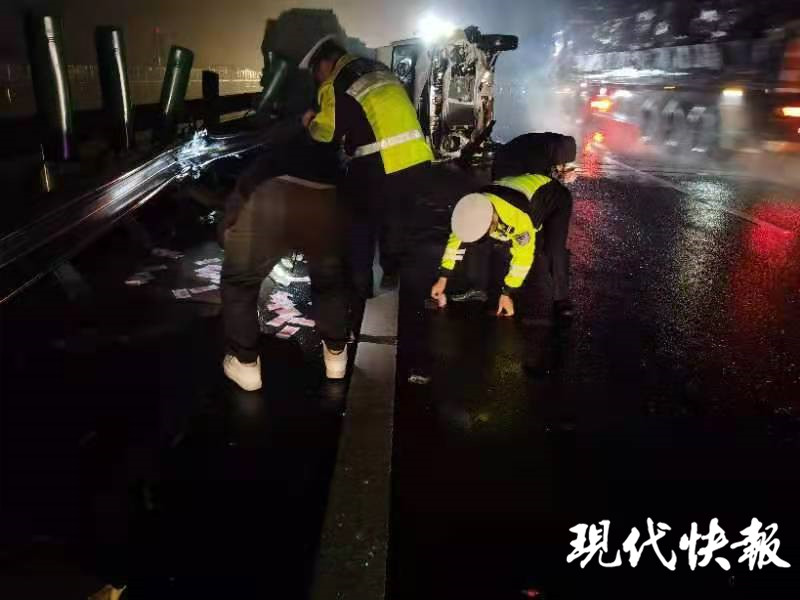 高速上追尾撒落一地百元大鈔 交警冒雨撿回三萬(wàn)多元