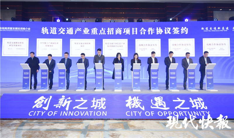 (記者 盧河燕 文/攝)11月27日,“‘鏈’上南京——2020南京軌道交通產(chǎn)業(yè)鏈高質(zhì)量發(fā)展投資推介會”舉行?,F(xiàn)場不僅介紹了南京軌道交通產(chǎn)業(yè)發(fā)展情況,推介產(chǎn)業(yè)投資環(huán)境,還簽約了一批軌道交通產(chǎn)業(yè)重點招商項目合作協(xié)議?,F(xiàn)代快報記者了解到,今年南京軌道交通產(chǎn)業(yè)預(yù)計營收突破800億元。
