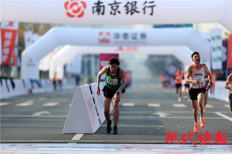 (記者 李楠 盧河燕/文 顧煒/攝)11月29日7點30分,2020南京馬拉松暨全國馬拉松錦標賽(奧運會馬拉松達標賽)鳴槍開跑。據(jù)悉,這是本年度國內(nèi)唯一舉辦的全國馬拉松錦標賽和東京奧運會達標賽。在終點線前,現(xiàn)代快報記者注意到多幅畫面,既有倒地后憑著頑強意志完成比賽的95后選手楊樂,也有跑馬4年的60后“輪椅跑者”。在南馬賽道,他們奮力拼搏,展現(xiàn)中國體育精神,令全場觀眾動容。