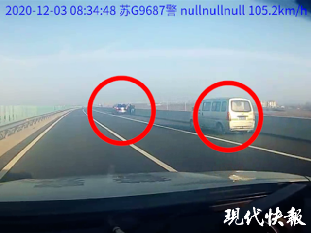 現(xiàn)代快報(bào)記者從連云港交警支隊(duì)了解到,12月3日上午8點(diǎn)34分,連云港交警高速五大隊(duì)民警在長(zhǎng)深高速巡邏時(shí),發(fā)現(xiàn)兩輛汽車停在應(yīng)急車道。交警立即上前查看,發(fā)現(xiàn)兩車不是因?yàn)檐囉泄收喜磐O?,而僅僅是為了靠邊下車聊事情,民警依法對(duì)其中的越野車駕駛員處罰完畢后,接過(guò)另一輛面包車駕駛員出示的駕駛證。