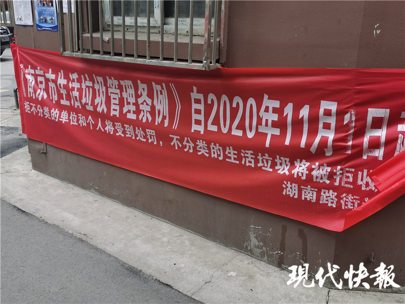 “垃圾分類好,廢物變?yōu)閷?rdquo;“拒不分類的單位和個人將受到處罰,不分類的生活垃圾將被拒收”,走進湖南路街道湖北路87-89號小區(qū),道路兩側的橫幅很顯眼。每棟單元樓前,還貼有垃圾分類宣傳彩頁。