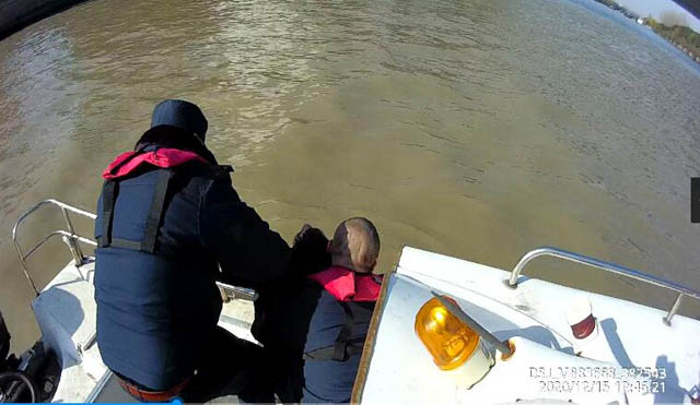 現(xiàn)代快報記者從常州交通部門了解到,12月15日中午,常州市交通運輸綜合行政執(zhí)法支隊水上大隊二中隊執(zhí)法人員剛結(jié)束上午的巡航,正在吃著午飯。突然,從駐地邊上的村子里傳來一聲高喊:“快看,常金大橋上有人跳河!”話音剛落,一道黑色的人影快速越過護(hù)欄,墜入大運河中。執(zhí)法人員扔下手中的盒飯,抓起救生衣套上,跳入摩托艇,調(diào)轉(zhuǎn)船頭直沖人員落水點。