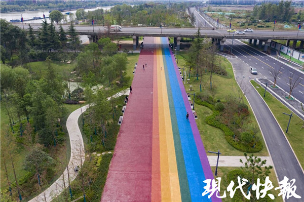冬季蘇北平原寒風凜冽,大運河上船只往來,依然繁忙。宿遷運河灣公園里卻透著寧靜之美,天藍水清,各種常綠樹種生機盎然。這里曾是運河碼頭,周圍有玻璃廠、發(fā)電廠等舊廠房,環(huán)境并不理想。經過改造升級,這里的面貌煥然一新,成了當?shù)氐木W紅景點。現(xiàn)代快報了解到,該公園是2019年開始建設,為當年宿遷大運河文化帶中心城市建設的一項重點工程,總投資約3億元,2020年9月30日開園。