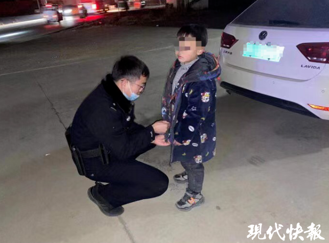 由于夜晚天氣寒冷,民警將孩子帶上警車。“我們把小男孩帶到了石榴中心小學(xué),與小男孩的老師取得了聯(lián)系,通過老師的幫助,我們成功聯(lián)系到小男孩的家長。”不久,孩子的家長匆匆來到現(xiàn)場。