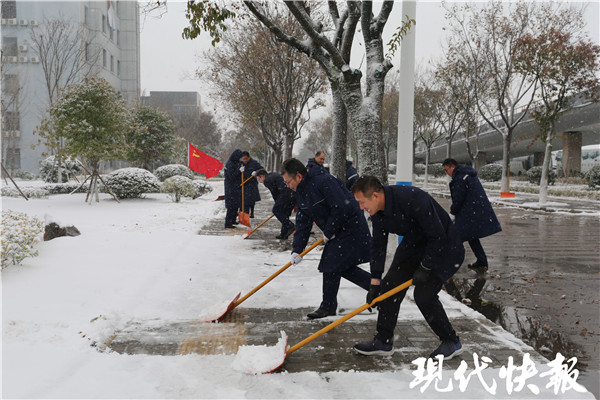 為確保場區(qū)道路暢通,徐州、連云港機(jī)場組織機(jī)關(guān)工作人員手拿鐵鍬、推雪板和掃把等工具,頂著寒風(fēng)、躬著身子,對外場周圍路段鏟雪。在黨員突擊隊(duì)旗幟的照耀下,全體除冰雪隊(duì)員形成一個(gè)充滿凝聚力和戰(zhàn)斗力的堡壘。