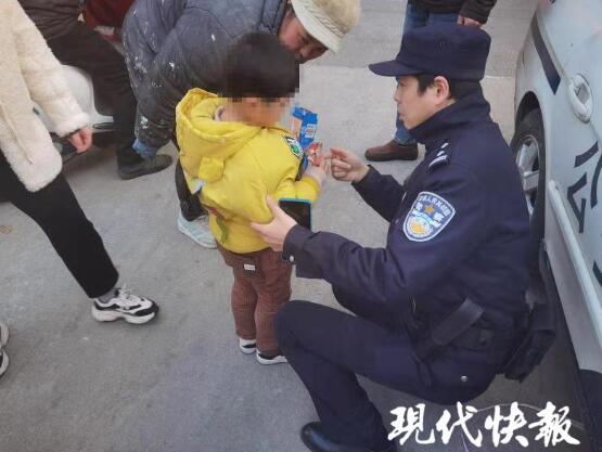 接報后,泰州市公安局姜堰分局三水派出所迅速趕到現(xiàn)場,發(fā)現(xiàn)男孩穿著黃色小棉襖,看起來年齡只有三四歲。天氣寒冷加之受了驚嚇,男孩瑟瑟發(fā)抖,眼淚止不住地往下流。周圍群眾均表示不認識該男孩,民警買來餅干等零食耐心安撫,并把他帶上警車取暖。
