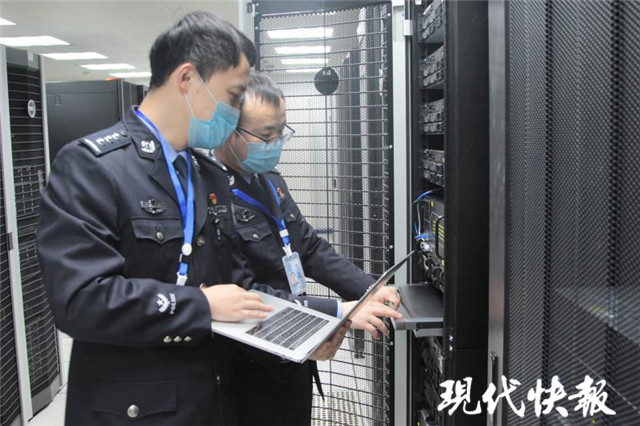 △南京市公安局大數(shù)據(jù)中心民警在測試系統(tǒng)運(yùn)行情況