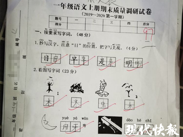 1月8日,記者聯(lián)系到發(fā)視頻的穆女士,她說兒子今年只有7歲,名叫叮當(小名),在海州新壩中心小學讀一年級。視頻中的事情發(fā)生在1月6日下午放學后,因為自己在附近超市打工,兒子就獨自一人先回到家,習慣一到家就通過視頻和媽媽對話的叮當,拿出當天的語文測試試卷,亮出上面的分數(shù),并對著鏡頭向媽媽報喜:“媽媽,我考了97分!”結(jié)果,媽媽并沒有像往常一樣回答叮當,叮當顯得有點失望,在后退幾步后,再次對著鏡頭說了自己的分數(shù),媽媽還是沒有回答,隨后,叮當很懂事的坐到桌子邊,拿出作業(yè)本,安靜的做起作業(yè)。