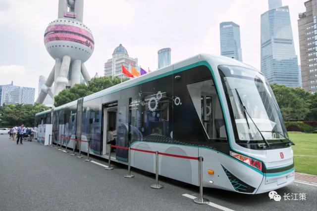 ▲2020年9月3日,全球首列數(shù)字軌道膠輪電車(DRT)亮相上海 視覺中國/圖