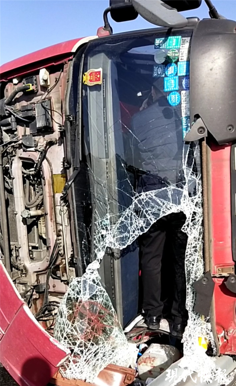 高速上貨車側(cè)翻司機被困 法院干警砸玻璃救人